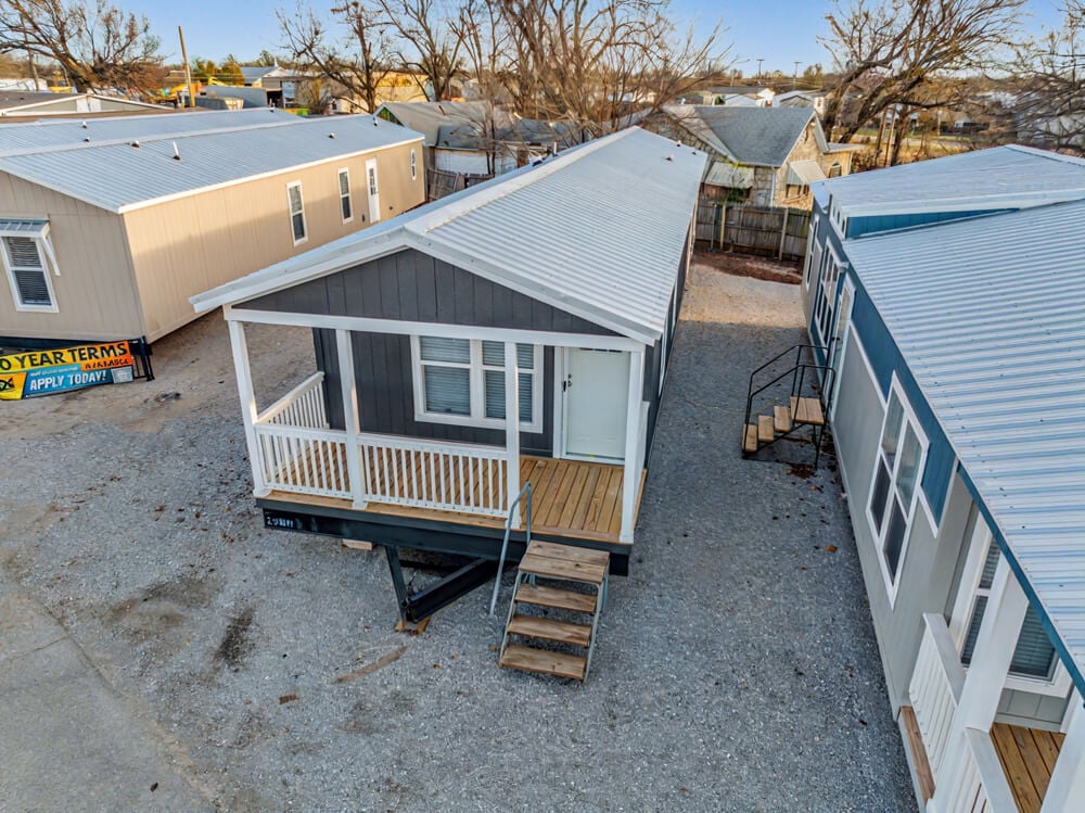 The New Vision product is proudly Built in Oklahoma! Perfect for lake front property. featuring a beautiful front porch, smart panel exterior, and metal roof.